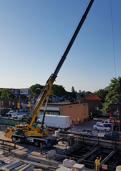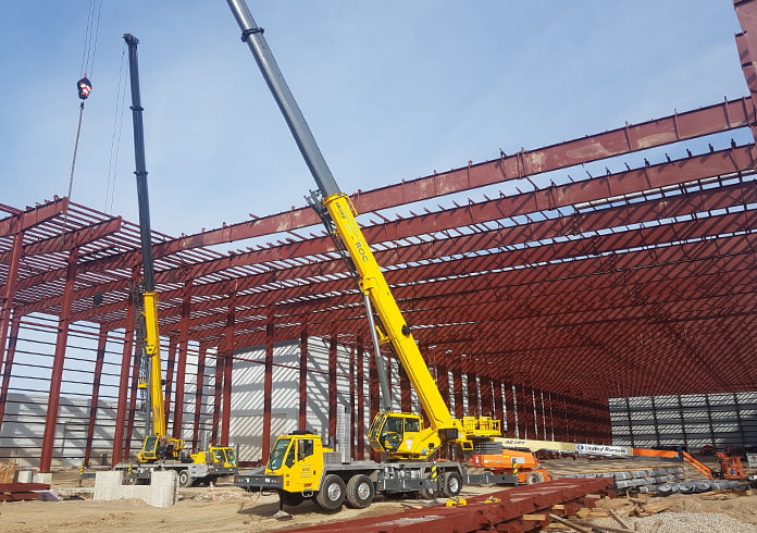 Mobile All-terrain cranes are lightweight and capable of lifting extremely heavy loads to great heights. They are easily and quickly repositioned from one area to another and can operate in a fraction of the space that other cranes need, making them perfect for narrow working spaces.